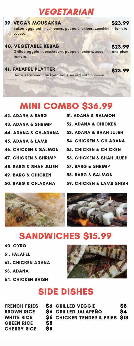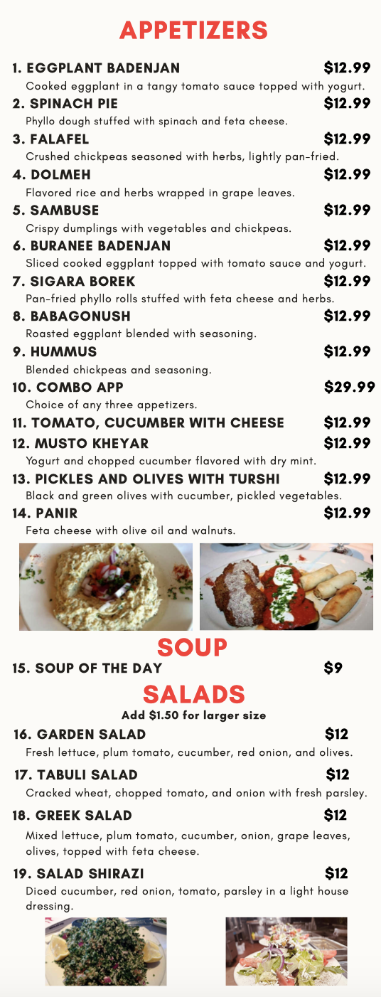 arrives at the table or doing take-out in order to confirm that